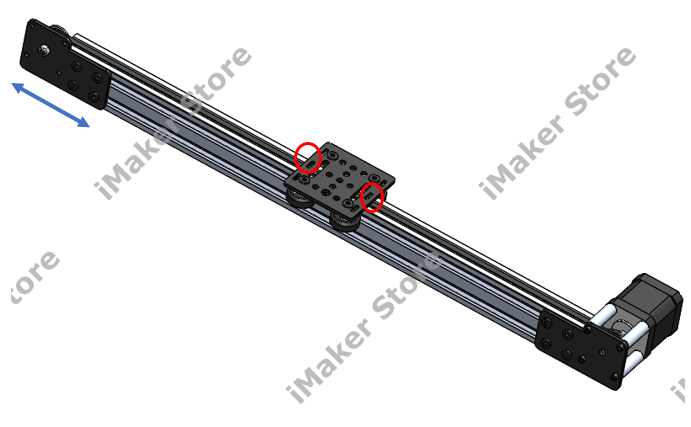 Note: Make sure the gantry cart runs smoothly along the V-slot rail by adjusting the eccentric spacers.